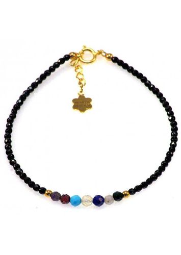 Kamień: Granat, Cytryn, Lapis, Malachit, Kryształ, Ametyst, Turkus Rozmiar kamienia: 2mm / 3mm Długość: 17,5 cm + przedłużka do 19,5 cm Zapięcie: klasyczne (federing) Biżuteria ręcznie wykonana, produkt Polski.