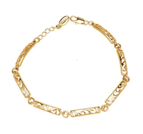 Wyjątkowa, ażurowa bransoletka do każdej stylizacji. Długość 18cm + 2cm, szerokość 0,5cm. Bransoletka pozłacana.
