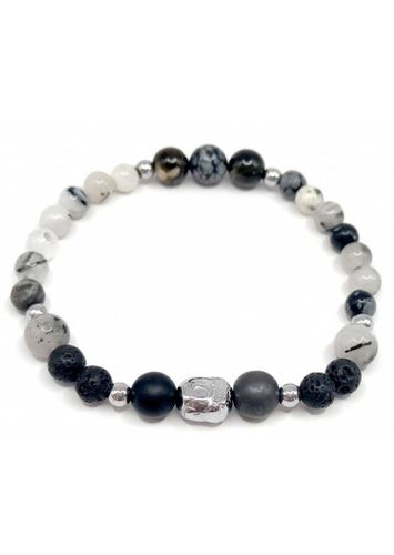 Bransoletka wykonana na gumce Kamień: Hematyt + Kwarc+ Lawa + Obsydian Rozmiar kamienia: 4/6mm Rozmiar uniwersalny.