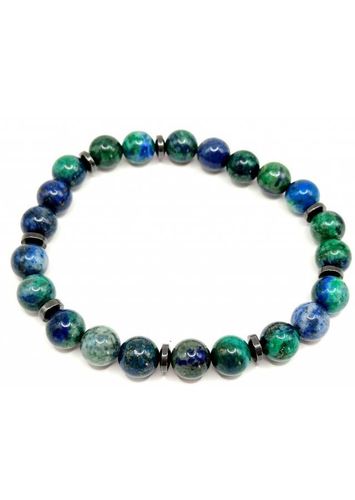 Bransoletka wykonana na gumce Kamień: Chryzokola+ Hematyt Rozmiar kamienia: 6mm Rozmiar uniwersalny.