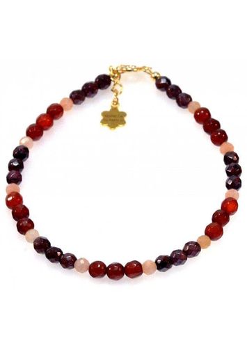 Kamień: Granat, Karneol, Kamień Słoneczny Rozmiar kamienia: 3mm Długość: 17,5 cm + przedłużka do 19,5 cm Zapięcie: klasyczne (federing) Biżuteria ręcznie wykonana, produkt Polski.
