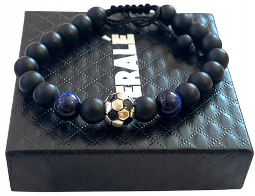 Ta stylowa męska bransoletka z naturalnych kamieni czarnego agatu i niebieskiego oka tygrysa wyróżnia się nie tylko eleganckim designem z akcentem w postaci czarno-srebrnej piłki nożnej, ale także wyjątkowymi właściwościami harmonizującymi ciało i duszę. Naturalne kamienie o średnicy 8 mm delikatnie masują nadgarstek, wspierając stabilność emocjonalną i koncentrację, co pozwala na pełne skupienie w kluczowych momentach życia.
