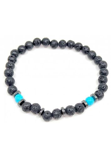 Bransoletka wykonana na gumce Kamień: Hematyt+ Howlit + Lawa Rozmiar kamienia: 6/4mm Rozmiar uniwersalny.