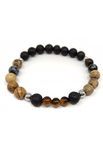 Bransoletka wykonana na gumce Kamień: Tygrysie oko+ Hematyt + Lawa + Japis Rozmiar kamienia: 6/4mm Rozmiar uniwersalny.