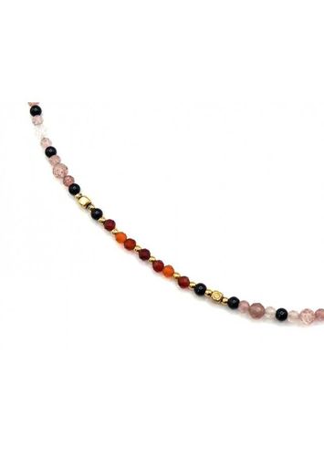Bransoletka wykonana ze srebra próby 925, pozłacanego 24 karatowym złotem Kamień: Kwarc+ Granat+ Turmalin i Hematyt Rozmiar kamienia: 4/3/2mm Długość: 17,5