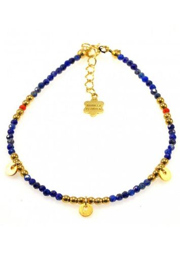Bransoletka wykonana ze srebra próby 925 , pozłacanego 24 karatowym złotem Kamień: Lapis i Hematyt Rozmiar kamienia: 2mm Długość: 17,5 cm + przedłużka do 19,5 cm