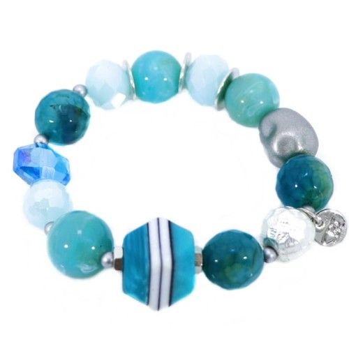 Bransoletka koraliki, wykonana z wysokiej jakości metali nieszlachetnych, nie czernieje, nie uczula. Ponieważ jest na gumce można ja dopasować prawie do każdej ręki.