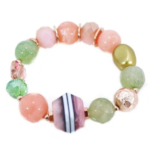 Bransoletka koraliki, wykonana z wysokiej jakości metali nieszlachetnych, nie czernieje, nie uczula. Ponieważ jest na gumce można ja dopasować prawie do każdej ręki.