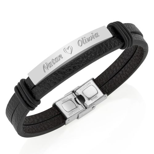 Elegancka bransoletka to doskonały prezent dla każdego mężczyzny. Bransoletka wykonana jest ze stali i skóry. Zapięcie również wykonano za stali nierdzewnej, odporna na małe zarysowania. Część skórzana składa się z dwóch kawałków skóry w kolorze czarnym, na środku dołączona metalowa blaszka na której wygrawerujemy Twoją dedykację. Spraw by obdarowany mężczyzna poczuł się najważniejszym na świecie. Dzięki opcji personalizacji wręczysz prezent jedyny w swoim rodzaju.