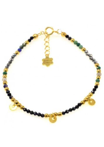 Bransoletka wykonana ze srebra próby 925 , pozłacanego 24 karatowym złotem Kamień: Noc Kairu i Hikari Rozmiar kamienia: 2mm Długość: 17,5 cm + przedłużka do 19,5 cm