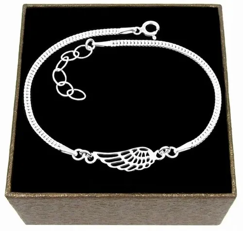 Delikatna zawieszka w kształcie skrzydła Anioła dodaje bransoletce nie tylko unikalnego uroku, ale także symbolicznego znaczenia, czyniąc ją idealnym prezentem dla kogoś wyjątkowego. Bransoletka, dostarczana w eleganckim pudełku jubilerskim, jest gotowa do wręczenia jako upominek.