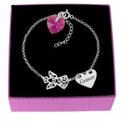 Bransoletka gwarantuje pełną personalizację dzięki gratisowemu grawerowi laserowemu na obu stronach serca, wykonanemu czytelną czcionką Gabriola (np. imię i data). Jej regulowana długość idealnie dopasowuje się do dziecięcej ręki, zapewniając komfort noszenia przez cały dzień, a wodoodporna natura srebra 925 czyni ją odporną na codzienne przygody.