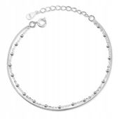 Ta wyjątkowa bransoletka na kostkę stopy została wykonana w całości z najwyższej jakości srebra próby 925. Niepowtarzalna konstrukcja podwójnej linii oraz delikatne, lustrzane kulki nadają jej eleganckiego i wyrafinowanego charakteru. Prawdziwy skarb jubilerskiej maestrii.