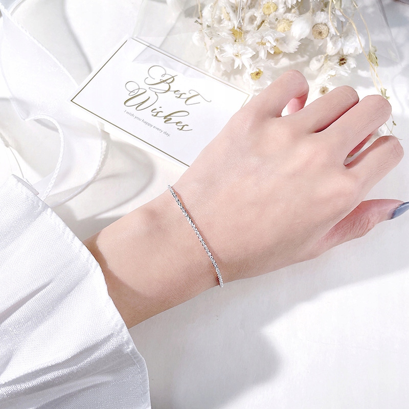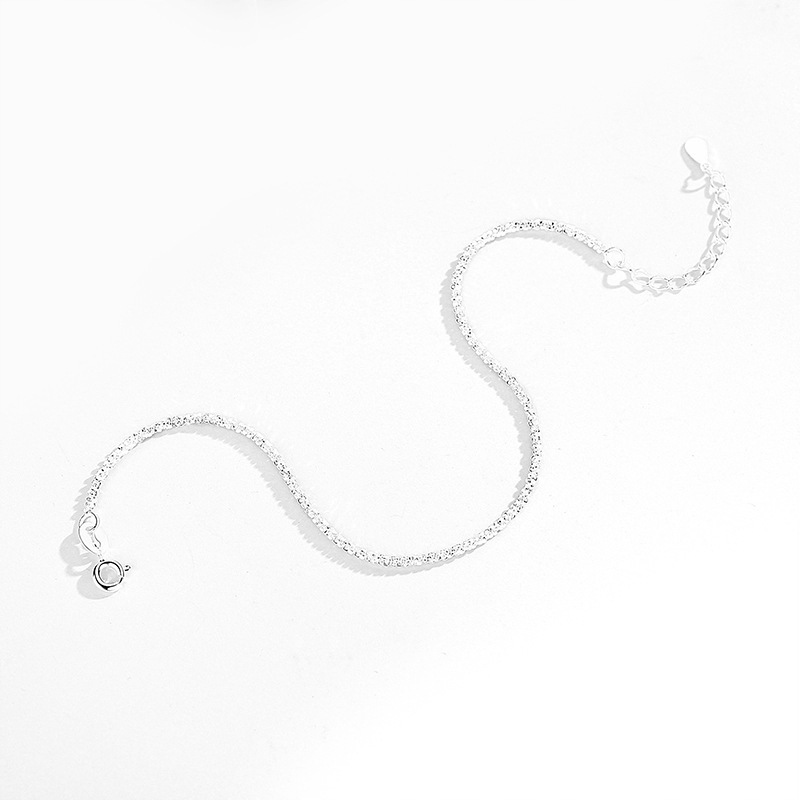 Bransoletka łańcuszkowa ze srebra próby 925 to delikatny model o drobnym splocie, który subtelnie połyskuje w świetle. Wykonana z jasnego srebra, posiada regulowane zapięcie umożliwiające dopasowanie długości do nadgarstka. To lekka i uniwersalna biżuteria srebrna idealna do codziennego noszenia lub jako baza pod zawieszki.