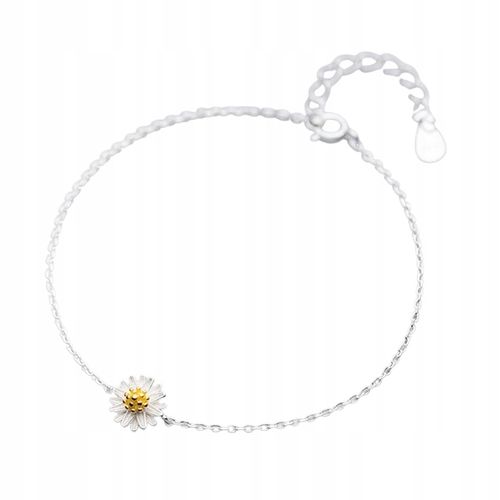 Bransoletka Stokrotka z Białymi Płatkami i Złotym Środkiem to subtelna ozdoba wykonana ze srebra próby 925, której centralnym elementem jest drobny kwiat symbolizujący czystość i radość. Delikatny srebrny łańcuszek pięknie kontrastuje z jasnozłotym środkiem stokrotki, nadając całości wiosennego uroku. Biżuteria nawiązuje do natury i kobiecej lekkości, sprawiając, że idealnie nadaje się na prezent.