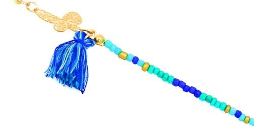 Bransoletka z koralikami w odcieniu niebieskim z motylkiem i ozdobnymi frędzlami Długość maksymalna 20 cm, szerokość 0,3 cm, szerokość ozdoby 2 cm, frędzle długość 3 cm, przedłużenie 6 cm. Warstwa złota naniesiona w metodzie electroplated * Pokryte jest w całości 4 - 8 mikronową warstwą 14K, 18K i 24K złota * Warstwa złocenia pokryta jest lakierem jubilerskim, który zabezpiecza powłokę złota przed ścieraniem i nadaje wspaniały połysk * Biżuteria wykonana ze stali szlachetnej-należy do grupy stali o strukturze austenitycznej ( podobna chirurgiczna 316 L) : - jest hipoalergiczna i nie uczula, ponieważ nie emituje związków niklu do organizmu - nie koroduje, nie odbarwia się i długo cieszy swoim blaskiem - ścieralność uzależniona od noszenia i od pH ciała - nie wymaga specjalnej konserwacji jak biżuteria ze srebra, czy złota Ze względu na różne ustawienia monitorów oraz różną jakość wyświetlaczy zastosowanych w urządzeniach mobilnych, kolory przedstawione na zdjęciach mogą nieznacznie różnić się od rzeczywistych. Dokładamy wszelkich starań, aby na stronie Sklepu przedstawiać tylko realne zdjęcia produktów, jak najbardziej zbliżone do rzeczywistości.