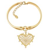 Pozłacana bransoletka Colibra by Sviatlana z kolekcji BELLA, z ręcznie malowanym, białym sercem, zdobionym kryształkami Preciosa. Bransoletka posiada przedłużkę. Wielkość serduszka 3,5cm/3,5 cm