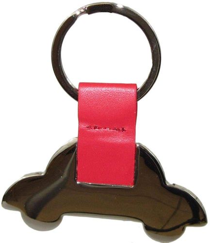 Metalowy breloczek - auto, na czerwonym pasku.