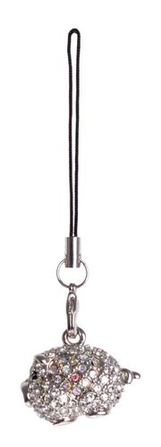Metalowa zawieszka - świnka z serduszkiem, z kryształkami.