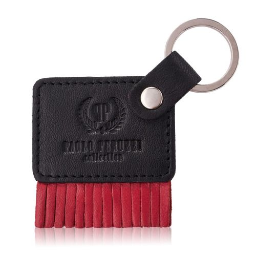 Breloczek T–88 został wykonany ze skóry naturalnej w kolorze czarnym. Nieoczywistego designu dodaje mu skórzany akcent kolorystyczny, przypominający kobiece rzęsy. Brelok wyposażono w solidne, sprężyste kółko w kolorze srebrnym, na którym z łatwością zamocujesz na nim klucze. Tłoczone logo producenta jest potwierdzeniem wysokiej jakości wykonania breloczka. Skórzany breloczek do kluczy jest modnym drobiazgiem, który możesz wręczyć bliskiej Ci osobie jako prezent. Charakterystyka breloczka do kluczy Model: T–88–BL/RD Producent: Paolo Peruzzi Materiał: skóra naturalna Mocowanie: kółko sprężyste Kolor główny: czarny Kolor dodatkowy: czerwony Kolor okuć: srebrne Zastosowanie: do kluczy Wymiary Wysokość: 5,5 cm Długość: 6 cm Długość z mocowaniem: 8 cm Średnica zewnętrzna mocowania: 3 cm