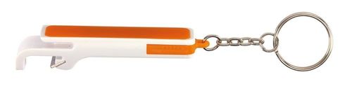 Brelok DOUBLE OPEN z wysuwaną podstawką na smartfon i zintegrowanym otwieraczem do butelek.