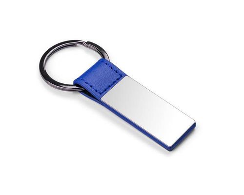 Elegancki dwustronny brelok wykonany z ekoskórki PU i metalu w kolorze grafitowym.