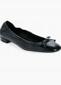 Urocza kokardka w kształcie wampira dodaje ponadczasowego uroku skórzanej buterii baletowej z miękko kwadratowym noskiem, który nadaje jej nowoczesny wygląd.