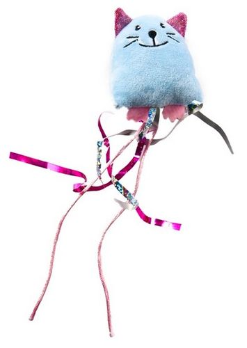 Uroczy pluszowy kotek z błyszczącymi i szeleszczącymi wstążkami, które przykują uwagę kota.