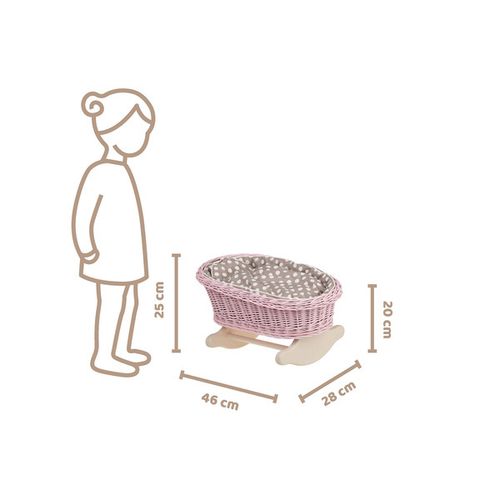 LARA XL WÓZEK I KOLEBKA WIKLINOWA DLA LALEK Z RÓŻOWĄ POŚCIELĄ 50X30 H47/60 / 46X28 H20/25 CM556.66 zł
