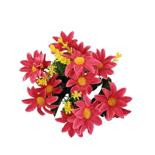 Bukiecik stokrotka w kolorze malinowym. Bukiecik składa się z 7 gałązek z podwójnym kwiatem i żółto zielonymi dodatkami.
