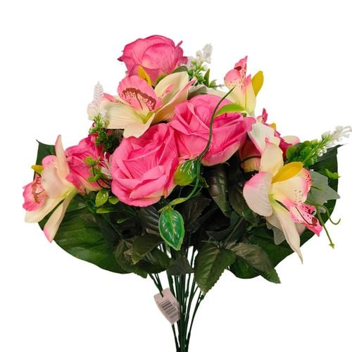 Bukiet kwiatów róży i storczyka z dodadkami.