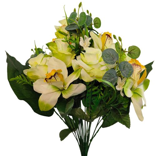 Bukiet kwiatów róży i storczyka z dodadkami.