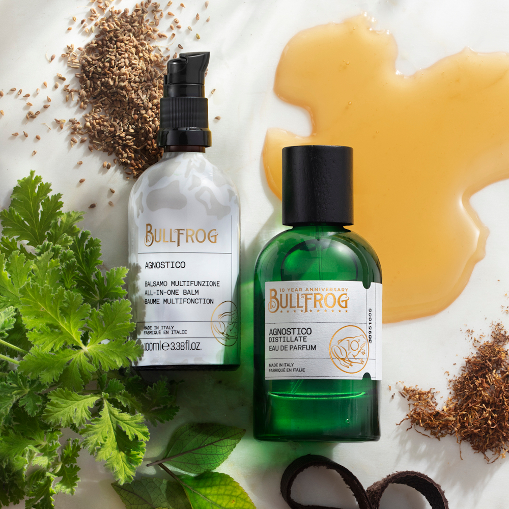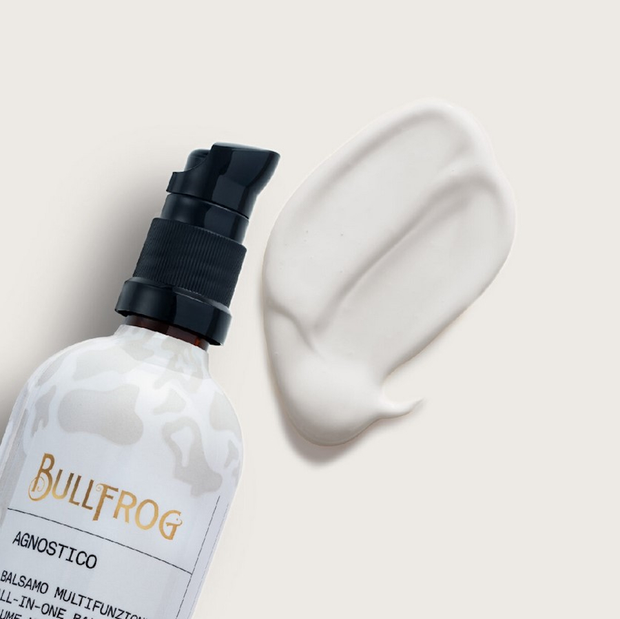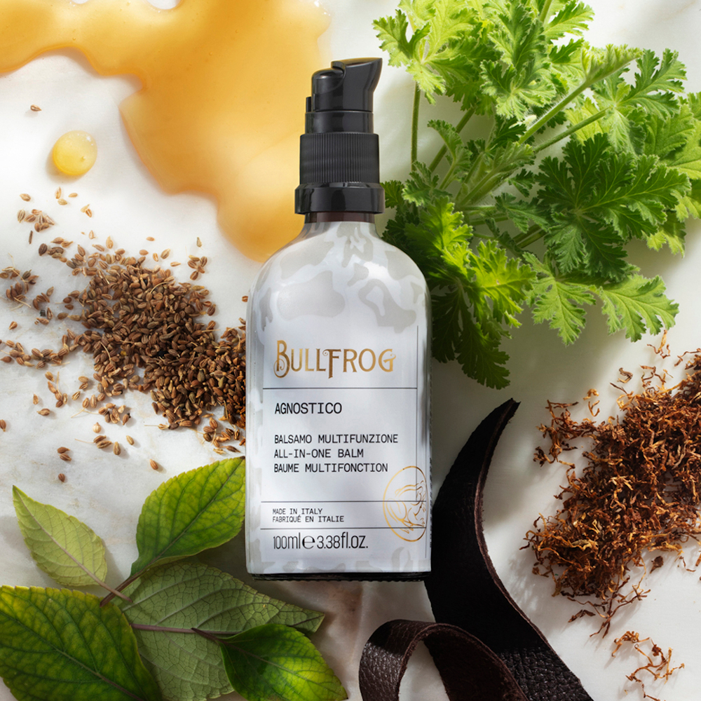 Formuła balsamu All-In-One Balm Agnostico On The Rocks pozostała wierna oryginałowi, co gwarantuje skuteczne działanie na każdym etapie pielęgnacji. Bullfrog All-In-One Balm Agnostico On The Rocks to idealny wybór dla tych, którzy chcą wygładzić i zmiękczyć nawet najbardziej niesforną brodę, a także złagodzić podrażnienia po goleniu. Kosmetyk zapewnia długotrwałe nawilżenie zarówno skóry twarzy, a także delikatnie pielęgnuje włosy bez ich obciążania.
