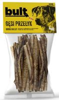 Przełyk z gęsi od BULTa to naturalny gryzak dla psów średnich i dużych ras. Sprawdzi się u czworonogów, które nie są zainteresowane plastikowymi gryzakami, a mają silne, nieposkromione „skłonności niszczycielskie”. Naturalny zapach mięsa zachęca do żucia, a niewielka wilgotność sprawia, że zjedzenie go zajmuje więcej czasu. Przekąskę można wykorzystać także w chwilach psiej nudy, kiedy nasz podopieczny nie ma ochoty na aktywną zabawę.