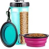 Butelka 2 w 1, pojemnik na pokarm i butelka na wodę pitną dla psa - 400 ml (niebieska)