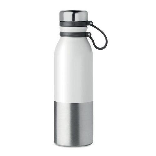 Dwuścienna malowana proszkowo butelka ze stali nierdzewnej z silikonowym uchwytem do łatwego przenoszenia.