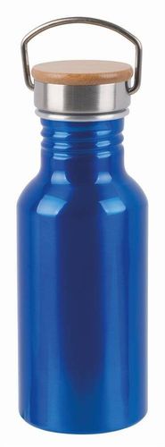 Aluminiowa butelka ECO TRANSIT z bambusową zakrętką i uchwytem do przenoszenia.