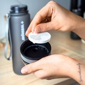 Zestaw gwarantuje pełną wygodę i niezawodność, z butelką odporną na wycieki dzięki silikonowemu uszczelnieniu i przyciskowi otwierania jednym kliknięciem. Filtr Actitex™ z opatentowaną włókniną węgla aktywnego zachowuje korzystne minerały jak magnez i wapń, umożliwiając eksplorację smaków z owocami w dołączonej nakładce – idealne na trening, pracę czy podróż.