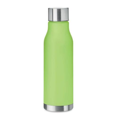 Butelka z RPET z gumowanym wykończeniem, zakrętka ze stali nierdzewnej z silikonowym pierścieniem.