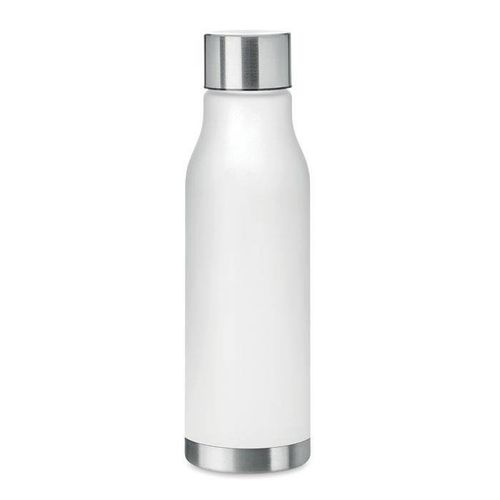 Butelka z RPET z gumowanym wykończeniem, zakrętka ze stali nierdzewnej z silikonowym pierścieniem.