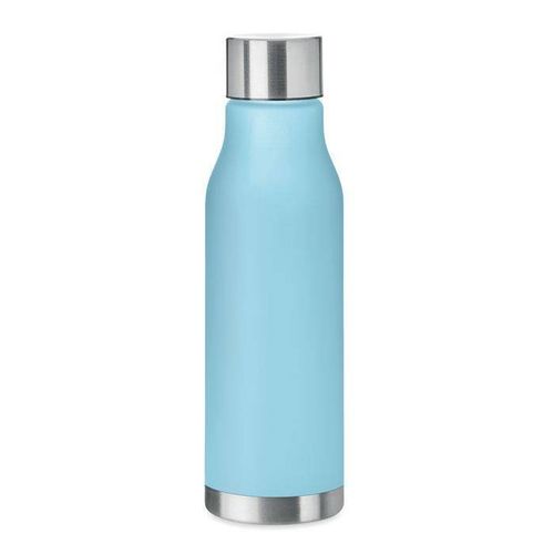 Butelka z RPET z gumowanym wykończeniem, zakrętka ze stali nierdzewnej z silikonowym pierścieniem.