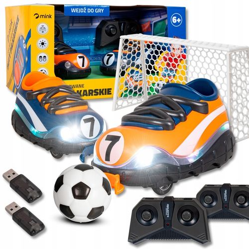 Zawiera wszystkie elementy potrzebne do gry: buty, piłkę, bramkę, piloty i ładowarki USB w jednym opakowaniu.