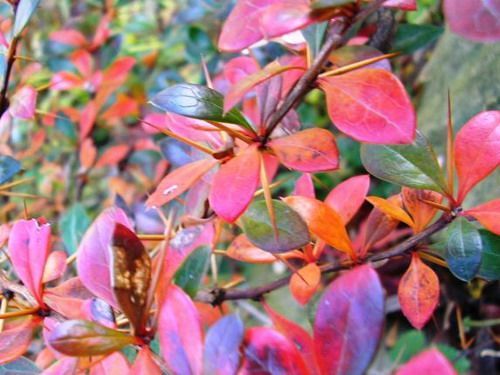 Liście ciemnozielone, błyszczące, częściowo pozostające zimą na krzewie.