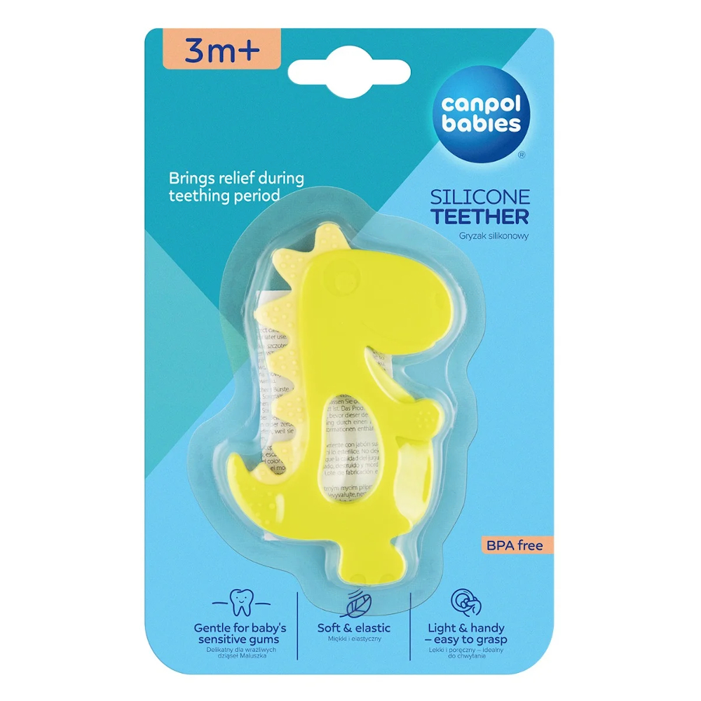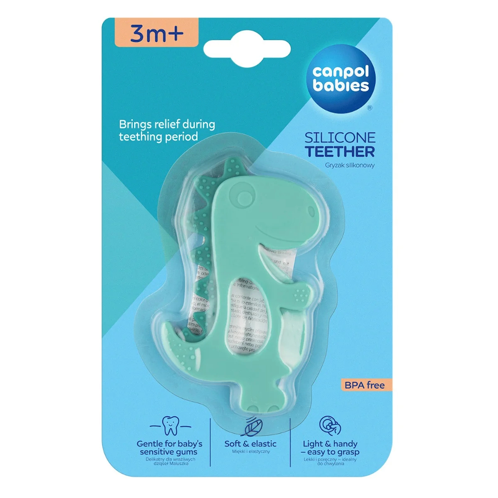 Praktyczny gryzak DINOZAUR idealnie sprawdzi się w okresie ząbkowania, gdy dziąsła bardzo swędzą i dziecko ma silną potrzebę gryzienia. Wykonany z miękkiego, elastycznego silikonu, który dopasowuje się do dziąseł malucha. Różnorodne kształty i kolory stymulują rozwój koordynacji wzrokowo ruchowej dziecka. Jest lekki i poręczny, dzięki czemu maluchowi jest łatwiej go złapać i utrzymać w małych rączkach. Przeznaczony dla dzieci w wieku 3m+. Przed podaniem dziecku gryzak należy schłodzić w lodówce.