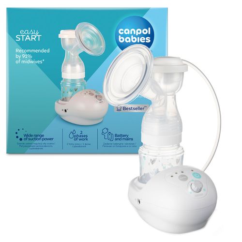 Laktator elektryczny EasyStart skutecznie wspomaga i reguluje laktację przy zastojach i nawale pokarmu. Jest ekonomiczny, idealny na początku laktacji i odciąganiu nadmiaru pokarmu oraz dla mam okazjonalnie odciągających pokarm. Laktator EasyStart jest polecany przez 91% położnych zgodnie z wynikami badania ankietowego przeprowadzonego w grupie 301 położnych w 2018 roku.