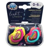 Rekomendowany przez specjalistów jako pierwszy smoczek Twojego Maluszka.* Smoczki Light touch stworzono by zapewnić maksymalny komfort najmłodszym dzieciom. Ich wyjątkowo miękka silikonowa gumka wymaga mniej wysiłku podczas ssania, a lekka, profilowana tarczka nie obciąża zgryzu i gwarantuje swobodne oddychanie, co według specjalistów ma istotny wpływ na prawidłowy rozwój jamy ustnej dziecka. Wygodny uchwyt smoczka pozwala na przymocowanie łańcuszka i ułatwia podanie go dziecku. Smoczki Light touch z łatwością utrzymasz w czystości, dzięki nowoczesnemu etui, które może służyć do przechowywania, ale też do szybkiej i wygodnej dezynfekcji w kuchence mikrofalowej. Wystarczy odrobina wody i 2 minuty by zapewnić smoczkom higieniczną czystość.