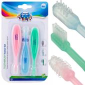 Zestaw do masażu dziąseł i mycia pierwszych ząbków malucha składa się z trzech szczoteczek: