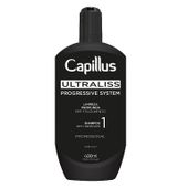 CAPILLUS ULTRALISS Nanoplastia to profesjonalna linia kosmetyków do progresywnego prostowania włosów bez formaldehydów z organicznym kwasem glioksalowym keratyną oraz kompleks aminokwasów. Skutecznie odbudowuje i nawilża włosy dzięki czemu zmniejsza objętość oraz puszenie się włosów pozostawiając wygładzone oraz lśniące włosy. Dla długotrwałego utrzymania się efektu prostych włosów zaleca się po zabiegu używać do pielęgnacji włosów kosmetyków bez soli i z keratyną.