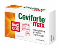Ceviforte MAX to suplement diety z maksymalną bezpieczną zawartością witaminy C 1000 mg, witaminy D 2000 j.m. i cynku 15 mg w 1 kapsułce.