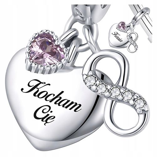 Ten elegancki charms ze srebra próby 925 to więcej niż zwykła ozdoba. To symbol głębokich uczuć i wiecznej więzi z ukochaną osobą. Serce, symbol miłości, zostało ozdobione cyrkonią, podkreślając delikatność i romantyzm relacji. Motyw nieskończoności stanowi piękne przypomnienie o nieprzemijającej miłości.